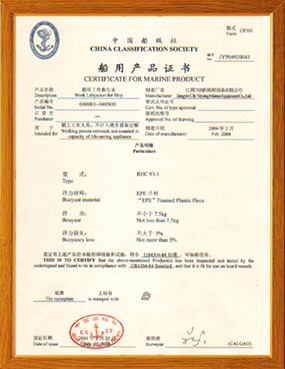 本公司具有完善的計(jì)量測(cè)試設(shè)備,健全的技術(shù)質(zhì)檢體系。救生圈、救生衣、健全的技術(shù)質(zhì)檢體系。公司主要生產(chǎn)救生圈、救生衣、救生燈具、船用配件等系列產(chǎn)品,產(chǎn)品品種齊全、性能符合1974年SOLAS公約,1996年修正案要求,經(jīng)中國(guó)船級(jí)社認(rèn)可。
